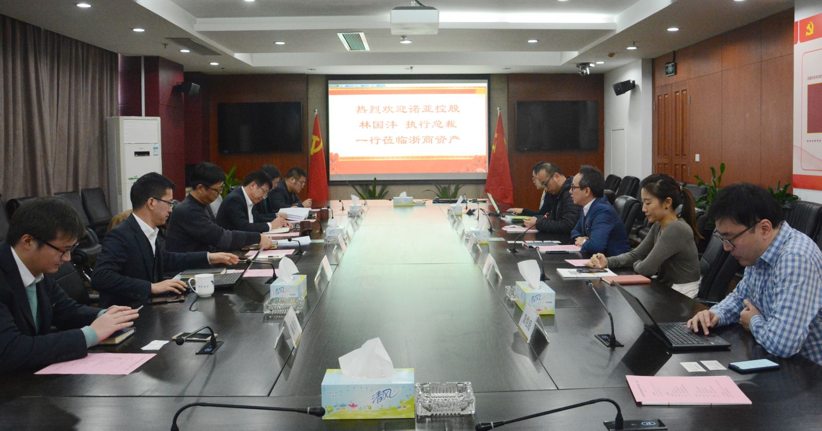 12月19日,諾亞控股執行總裁林國灃一行來訪浙商資產,公司總經理李偉達,副總經理、首席戰略官李傳全對諾亞控股一行的到來表示熱烈歡迎。