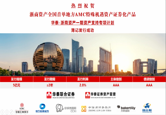 4月24日,華泰-浙商資產一期資產支持專項計劃在上交所簿記成功,這是我國證券交易所市場出現的首單以特殊機遇債權作為底層資產的資產證券化產品,也是地方AMC行業的首個特殊機遇資產證券化案例。